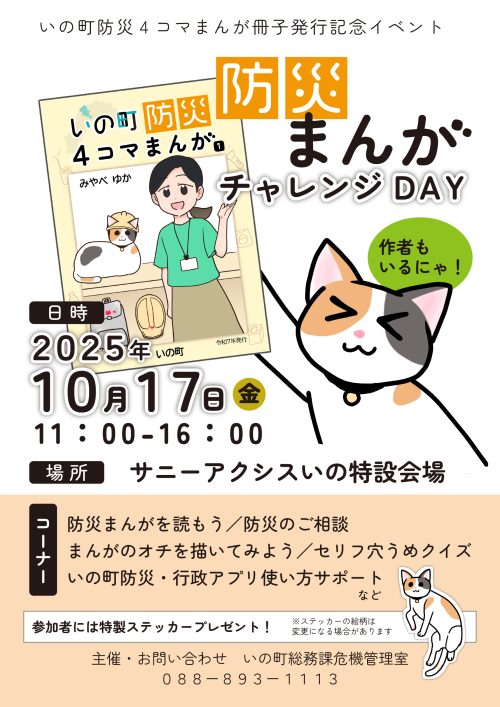 いの町防災4コマまんが冊子発行記念イベント「防災まんがチャレンジDAY」が開催されます。